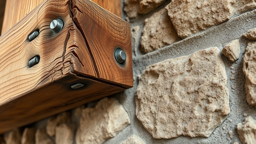 Think of your exposed natural materials as living entities needing care. You should regularly apply weatherproofing essentials to protect against moisture, sun, and temperature changes. Follow cleaning protocols suited for each material—gentle washes for wood, rust prevention for steel, and sealing for stone—to maintain their integrity. By nurturing these elements, you guarantee their beauty endures, symbolizing resilience and harmony in your design, year after year.