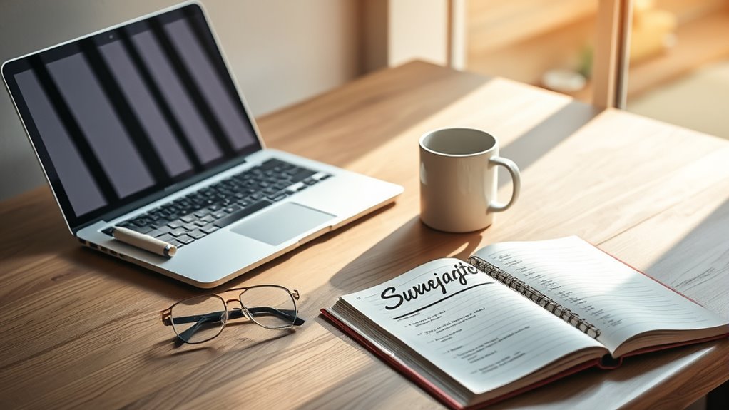 To prioritize your reading list effectively, start by evaluating your reading habits and identifying what truly interests you. Use distraction management techniques, like setting specific times for reading and limiting notifications, to stay focused. Categorize your content into must-reads and optional ones, then tackle the most important first. This approach helps you stay organized, reduces overwhelm, and makes your reading sessions more enjoyable and productive.