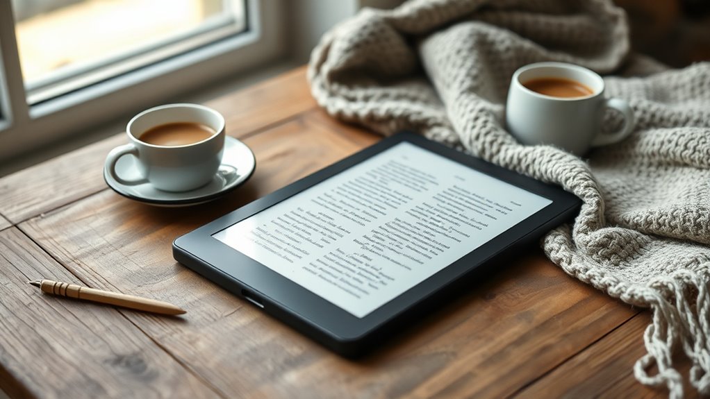 Choosing the right e-reader is like finding a trusted companion for your reading journey. Focus on what matters most to you—whether it’s screen clarity, battery life, or portability—and you’ll discover a device that feels tailor-made for your quiet moments. When you pick wisely, your e-reader becomes a window to endless worlds, turning every page into a treasured escape. Remember, the perfect device isn’t just a gadget—it’s your gateway to countless adventures waiting to unfold.