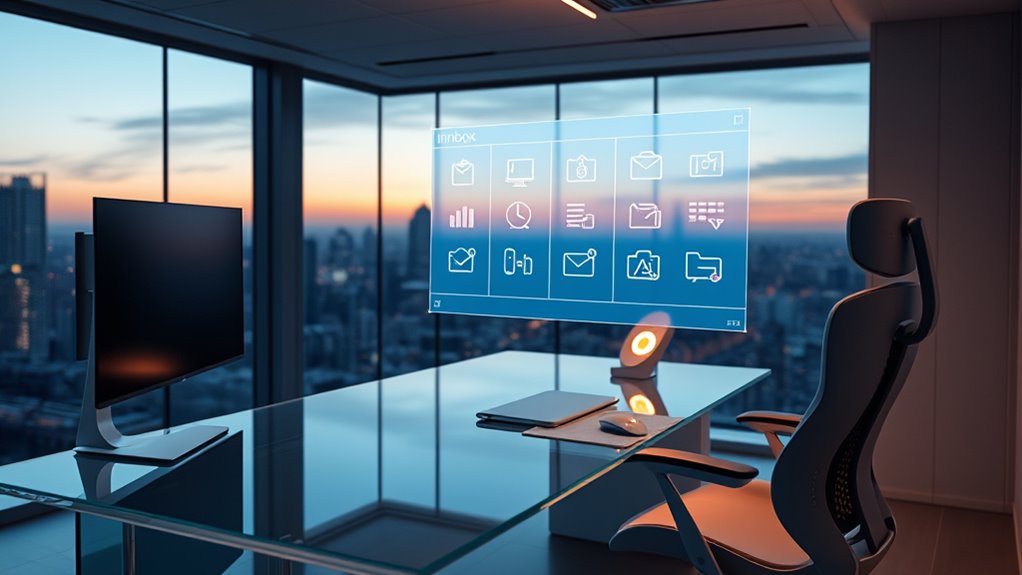 Advances in artificial intelligence and automation are poised to revolutionize how you manage your inbox by 2025. These technologies will help combat email overload by intelligently filtering and prioritizing messages, so you only see what matters most. Automated sorting will reduce clutter, while smart summaries will let you grasp key information without opening every email. Additionally, AI-driven notifications will address notification fatigue by sending only essential alerts, allowing you to focus without constant interruptions. Personalization algorithms will learn your habits, ensuring your inbox stays organized and manageable. Overall, these trends will make inbox management more efficient, helping you maintain clarity and control despite the increasing volume of digital communication. Inbox Zero will become more achievable and sustainable with these innovations.