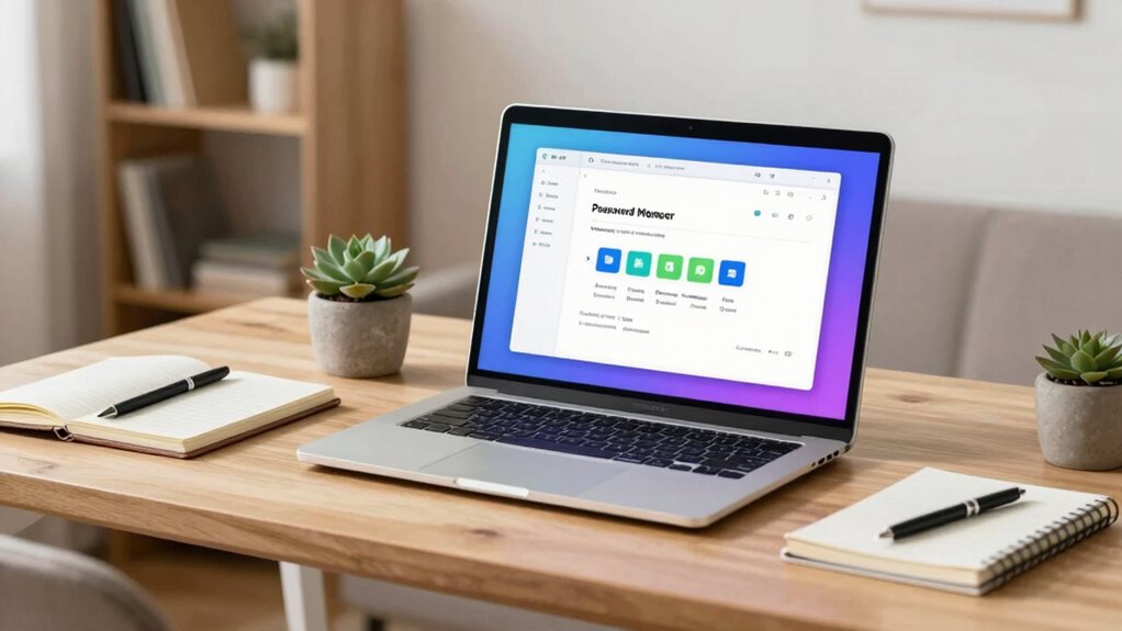Organizing your password manager for quick access is essential to streamline your login process and improve security. Start with password categorization by grouping related accounts, such as banking, email, and social media, to make locating credentials faster. Prioritize access by tagging your most-used passwords as high priority, ensuring they’re at the top or easily searchable. Remove outdated or rarely used entries to reduce clutter. Use clear, consistent labels for each entry to avoid confusion. Consider creating folders or tags that reflect your daily routines, so you can locate critical passwords instantly. This organization not only speeds up login times but also minimizes the risk of selecting incorrect credentials. A well-structured password manager keeps your most important accounts accessible without sacrificing security. Additionally, store return policies can often require you to access specific accounts quickly, making organization even more crucial. Maintaining an organized system can also help you avoid heatstroke signs related to prolonged exposure to stress, such as a cluttered digital environment. As ergonomics play a vital role in creating a comfortable workspace, a tidy password manager can enhance your overall digital experience. Moreover, just as humidity levels can affect the health of indoor plants, a cluttered password manager can negatively impact your digital well-being.