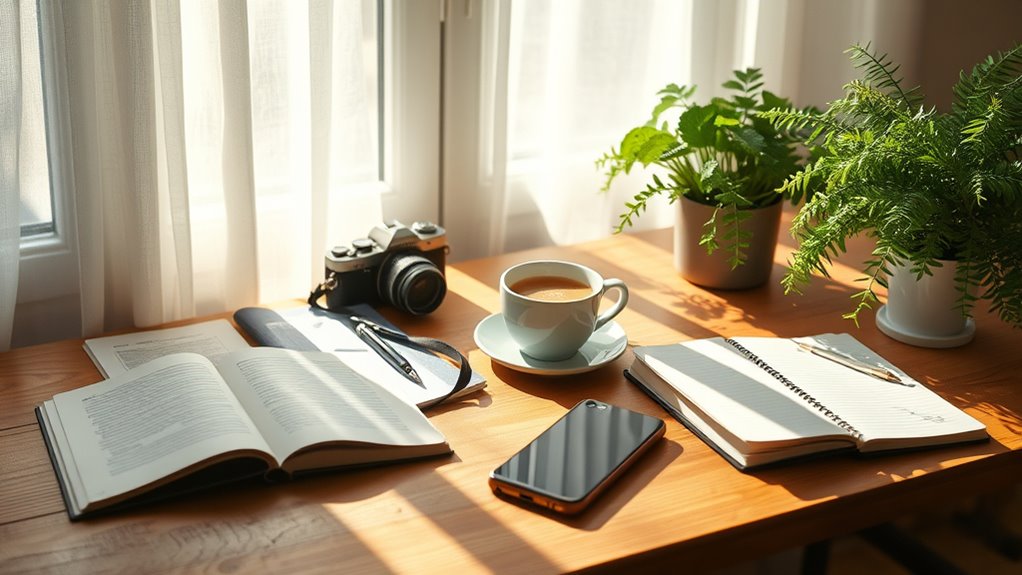 When you take a break from social media, it opens up space to explore new hobbies and interests that genuinely excite you. This hobby exploration allows you to discover creative pursuits you might have overlooked before. Without the constant distraction of feeds and notifications, you can focus on activities that bring real joy and fulfillment. You might try painting, writing, cooking, or learning an instrument—things that stimulate your creativity and help you unwind. Engaging in these pursuits not only broadens your skills but also deepens your understanding of what truly interests you. It’s a chance to reconnect with passions that may have been buried under social media noise, fostering genuine growth and self-discovery.