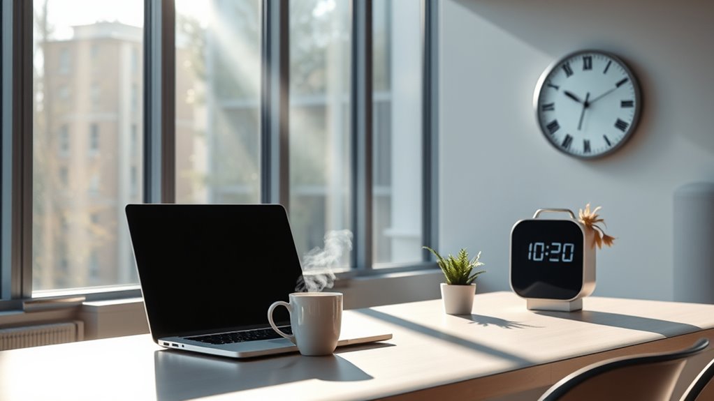 Understanding your body’s ultradian rhythms, which last about 90 to 120 minutes, helps you optimize work and break times. When you work in sync with these natural cycles, you stay sharper, prevent fatigue, and avoid burnout. Taking regular breaks—especially during natural dips in alertness—allows your mind to reset fully. Incorporating these insights into your routine can enhance focus and productivity, and exploring these strategies further reveals how you can work smarter and feel better throughout the day.