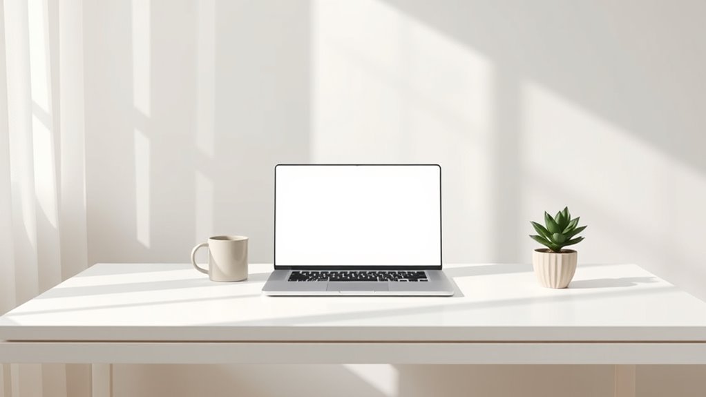 Think of your tools as the keys to a well-oiled machine. To support minimalism, you should focus on digital decluttering by removing unnecessary apps and files. Streamlined software like Notion, Trello, or Todoist helps keep your workflows simple and organized. These tools cut through the noise, letting you concentrate on what truly matters, so you can work efficiently without feeling overwhelmed by clutter or complexity.