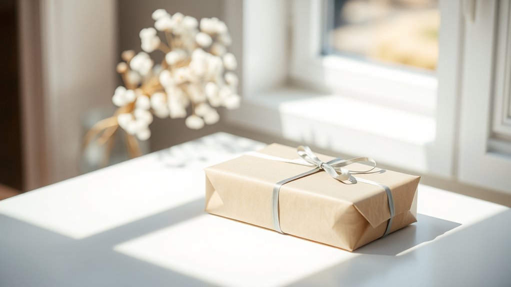 Many people are embracing minimalist gift giving all year round as a way to simplify their lives and focus on meaningful connections. Instead of cluttering your space with unnecessary items, you’re choosing to give gifts that truly matter. One effective approach is to prioritize sustainable packaging, which minimizes waste and reduces your environmental footprint. Instead of wrapping presents with excessive plastic or non-recyclable materials, you can opt for reusable cloth wraps, kraft paper, or even plant-based options. Not only does this make your gift more eco-friendly, but it also adds a personal touch that shows you care about the planet.