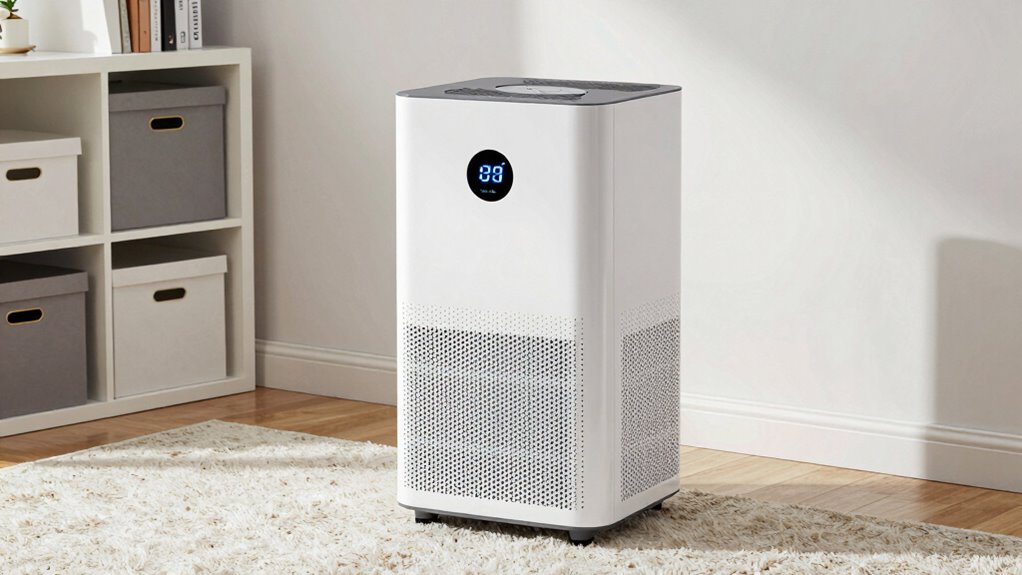 Have you ever wondered what the pint-per-day rating on a dehumidifier truly indicates? This number tells you how much moisture the unit can remove from the air in a day, which directly impacts humidity control. A higher pint-per-day rating means more efficient moisture removal, especially in damp spaces. However, it’s also important to take into account energy efficiency—larger capacity models often use more power, so choosing the right rating helps balance effective humidity control with lower energy costs. Don’t assume a higher rating is always better; instead, match it to your room’s moisture level. Understanding what these ratings mean helps you select a dehumidifier that maintains comfortable humidity without wasting energy.