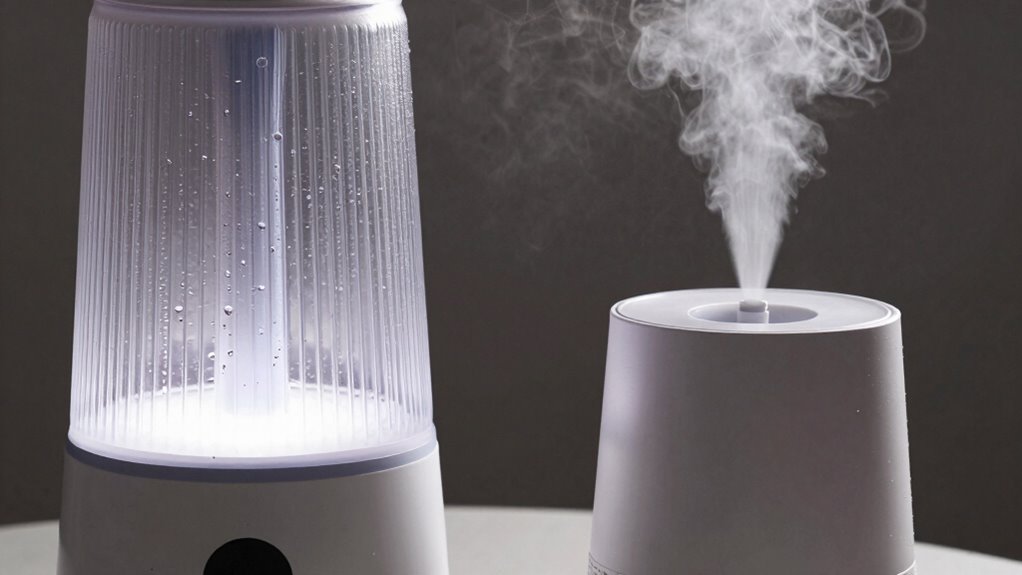 Are you trying to decide between an evaporative and an ultrasonic humidifier? If so, consider their design aesthetics and energy efficiency. Evaporative models often have a more functional look, blending into your space without much emphasis on style. Ultrasonic humidifiers, on the other hand, tend to feature sleeker, modern designs that complement contemporary decor. When it comes to energy efficiency, ultrasonic units usually consume less power because they use vibrating discs to produce mist without a fan. Evaporative humidifiers rely on a fan to circulate air through a wick filter, which can use more energy. Think about your aesthetic preferences and how much energy you’re willing to use daily. Both types have their strengths, but these factors can help guide your choice. Additionally, consider how color accuracy impacts the overall effectiveness of your humidification experience. It’s important to note that proper maintenance of your humidifier can significantly enhance its performance and lifespan. Regular maintenance is also essential for keeping your humidifier free from bacterial growth, ensuring a healthier environment. Using an air purifier along with your humidifier can further improve indoor air quality by removing allergens and pollutants. Moreover, both types of humidifiers require regular cleaning to prevent infection risks associated with bacterial growth.