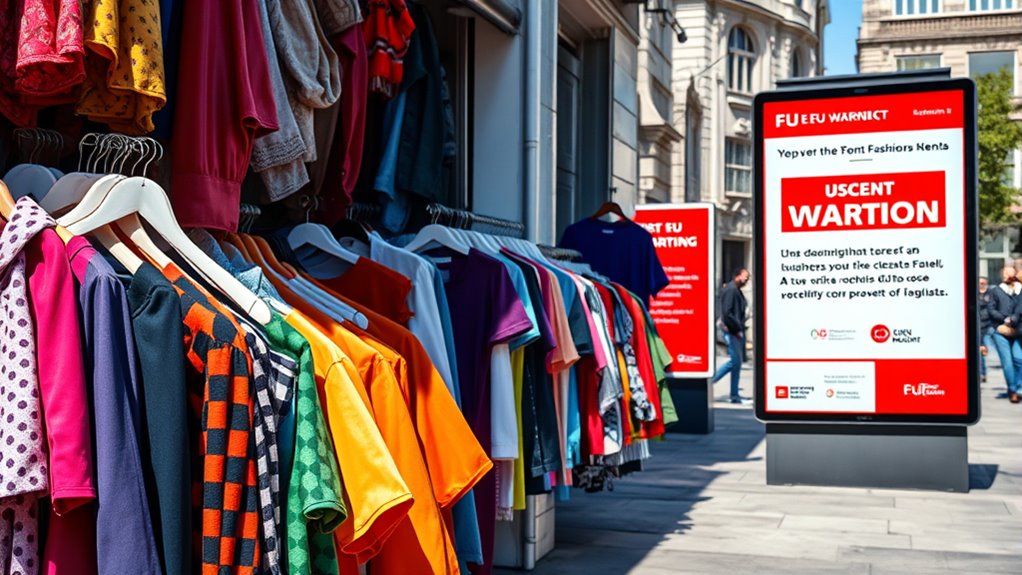 The EU is increasing investigations and complaints against fast fashion brands for using dark patterns that manipulate consumers and hide ethical issues. These tactics make sustainable options hard to find and encourage impulsive buying while obscuring the true cost of clothing. As awareness grows, more consumers demand transparency and fair practices. If you want to understand how these manipulative tactics impact your choices and what’s being done to combat them, there’s more to uncover below.