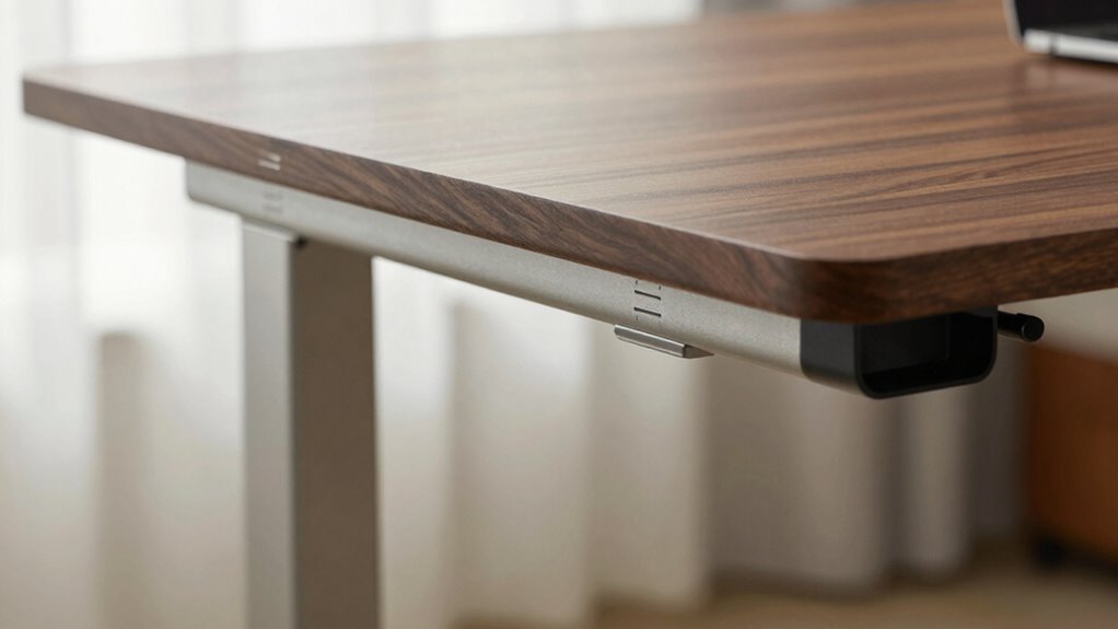 You should adjust your desk height throughout the day based on your activity and comfort. Typically, aim for a desk adjustment every 30 to 60 minutes, especially when switching tasks. Pay attention to your body’s signals—if your shoulders tense or your wrists hurt, it’s time to change the height. Maintaining proper ergonomics reduces strain and boosts productivity, so don’t hesitate to tweak the height frequency to suit your needs.