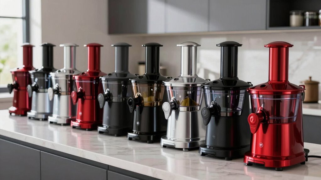 If you’re searching for the 15 best powerful centrifugal juicers of 2026, I’ve got you covered. These models feature high wattage motors, large feed chutes for whole fruits, and safety-focused designs that make juicing fast and hassle-free. From compact options like the Breville BJE200XL to heavy-duty choices like the GDOR 1200W, there’s a perfect fit for every need. Keep exploring to find out more about each of these top-performing juicers.