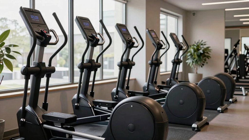 Since most compact elliptical machines arrive with at least 80% of their components pre-assembled, ease of setup is a key factor to take into account. Many models include clear labeling, easy-to-use tools, and illustrated manuals, making assembly straightforward. Typically, it takes about 20 to 30 minutes for most users to complete the setup, which isn’t too demanding. Some brands even offer step-by-step installation videos, helping to simplify the process further. A user-friendly design and simple instructions are essential to minimize frustration and to keep in mind you can start your workouts quickly. Choosing an elliptical with these features means less time fiddling with parts and more time enjoying your workout. Overall, prioritize machines that emphasize ease of assembly for a stress-free setup experience.