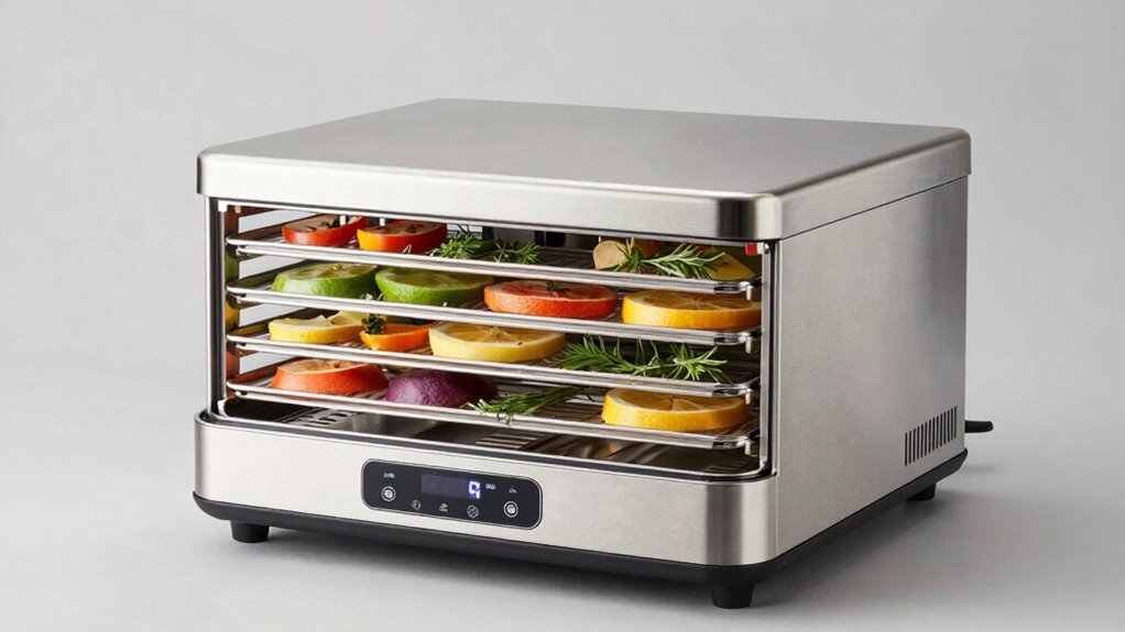 Choosing the right stainless steel large dehydrator is like finding the perfect key to open your culinary adventures. With so many powerful options on this list, you’re bound to discover a device that transforms your food preservation dreams into reality. Think of these dehydrators as your trusty sidekicks—ready to dry, preserve, and elevate your creations. Get ready to set out on a flavorful journey, where your kitchen becomes a haven of endless delicious possibilities.