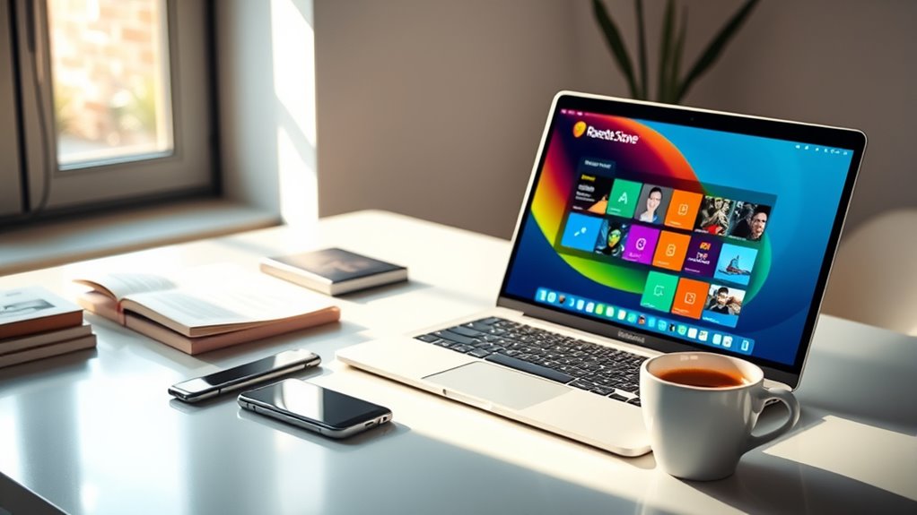 When evaluating Rosetta Stone lifetime subscriptions, it’s vital to take into account access flexibility, as this determines how seamlessly I can fit language learning into my daily routine. I look for a plan that offers multi-device access, so I can switch easily between my phone, tablet, and desktop without missing a beat. Self-paced learning without strict time limits or session caps is essential, allowing me to progress at my own speed. Offline or downloadable content is a big plus, enabling me to learn even without an internet connection. I also check if I can switch between languages or courses freely, ensuring versatility. Ultimately, flexible renewal terms give me confidence that the subscription can adapt to my changing schedule, keeping my language journey smooth and convenient.
